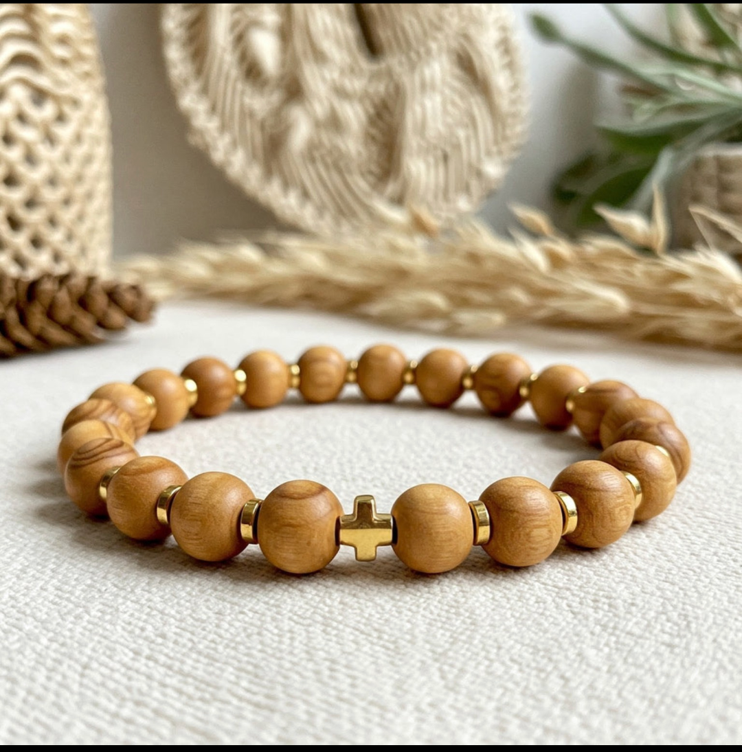 - Choice of authentic Leather cuff or Bethlehem Olive Wood bracelet
